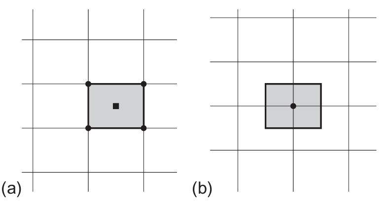 控制体相对于网格的形状与位置有多种定义方式,其中两种基本方法是: